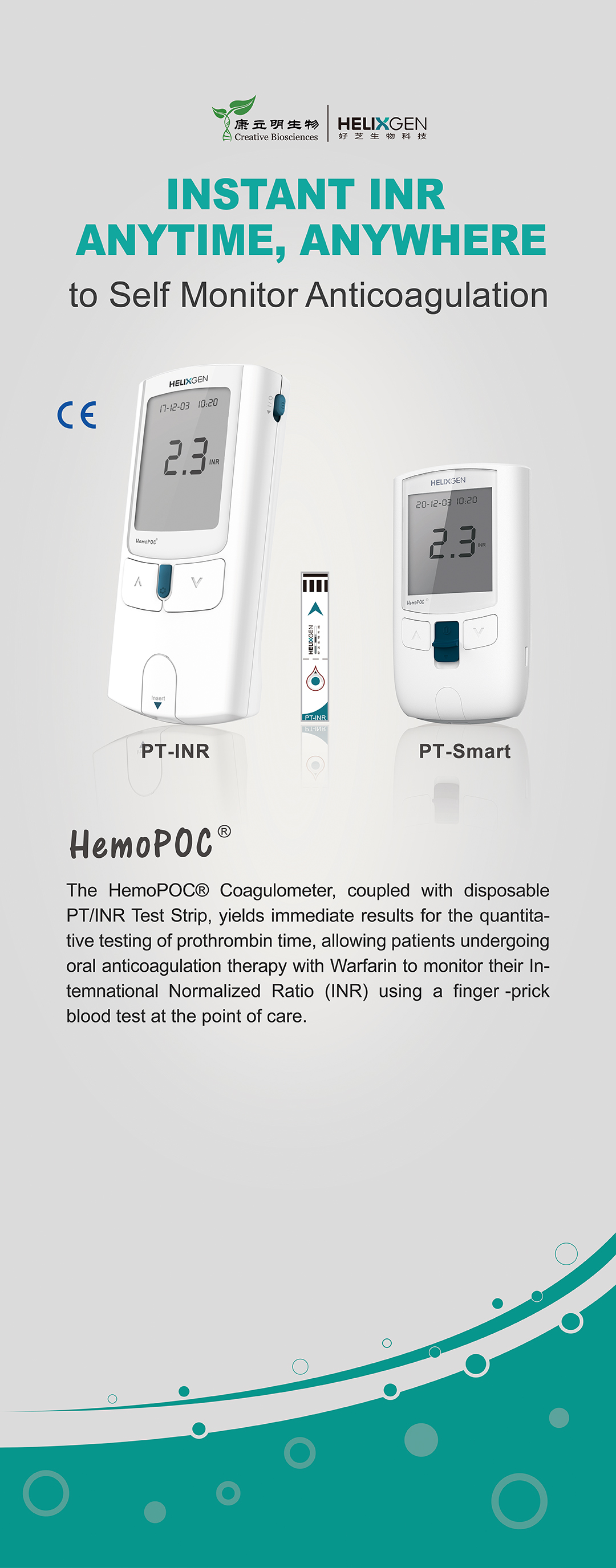 HemoPOC®凝血檢測(cè)儀是一款便攜式凝血檢測(cè)設(shè)備,與配套的檢測(cè)卡組成。HemoPOC®凝血檢測(cè)系統(tǒng),用于定量測(cè)定新鮮指尖毛細(xì)血管血的凝血酶原時(shí)間。該系統(tǒng)操作簡(jiǎn)單,滿足即時(shí)檢測(cè)及床旁檢測(cè)的應(yīng)用需求,增強(qiáng)抗凝管理和慢病管理的有效性。