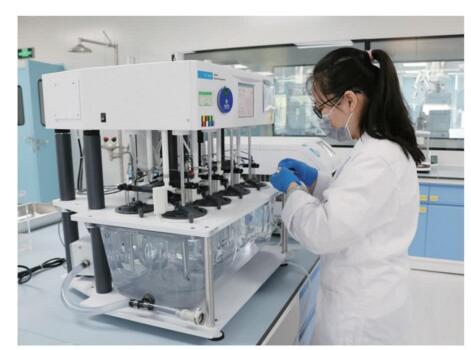 眾生睿創被黃埔區評為潛在獨角獸企業,并入選首屆粵港澳大灣區新經濟先鋒企業 50 強。圖為科研工作者在操作自動取樣溶出儀。張玉榮 / 攝